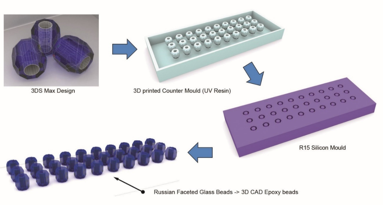 Perles de verre à facette « Russian Blue » -> perles époxy 3D CAD.